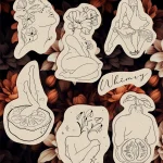 Botanical-pinup-ladies-divine-feminine-floral-whimsical-tattoo-flash